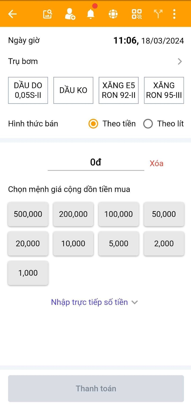 2/ Thiết lập bán hàng xăng dầu trên App: