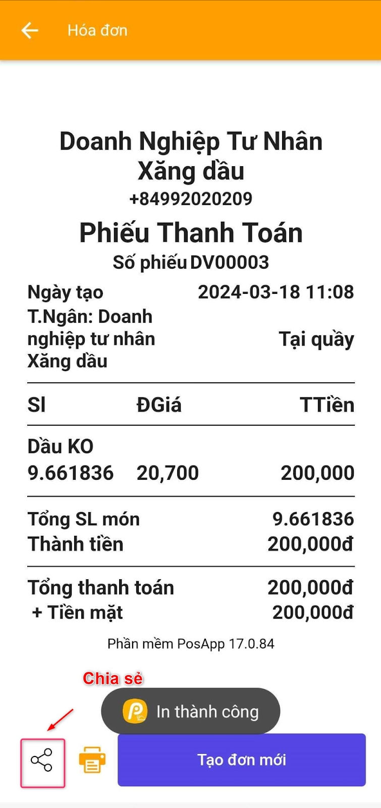 + Chia sẻ hóa đơn xăng dầu
